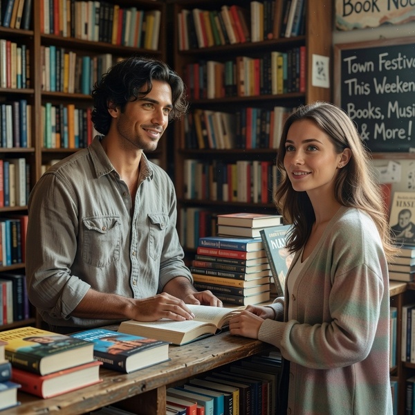 De bel van de boekhandel klingelde zacht toen Liv binnenstapte. De geur van oud papier en vers inkt vulde de ruimte, een contrast met haar bloemige wereld. Boeken stapelden zich op in hoge rekken, als fluisterende wachters. Finn stond achter de toonbank, een stapel paperbacks in zijn handen. Hij keek op, en zijn ogen ontmoetten de hare een fractie te lang.