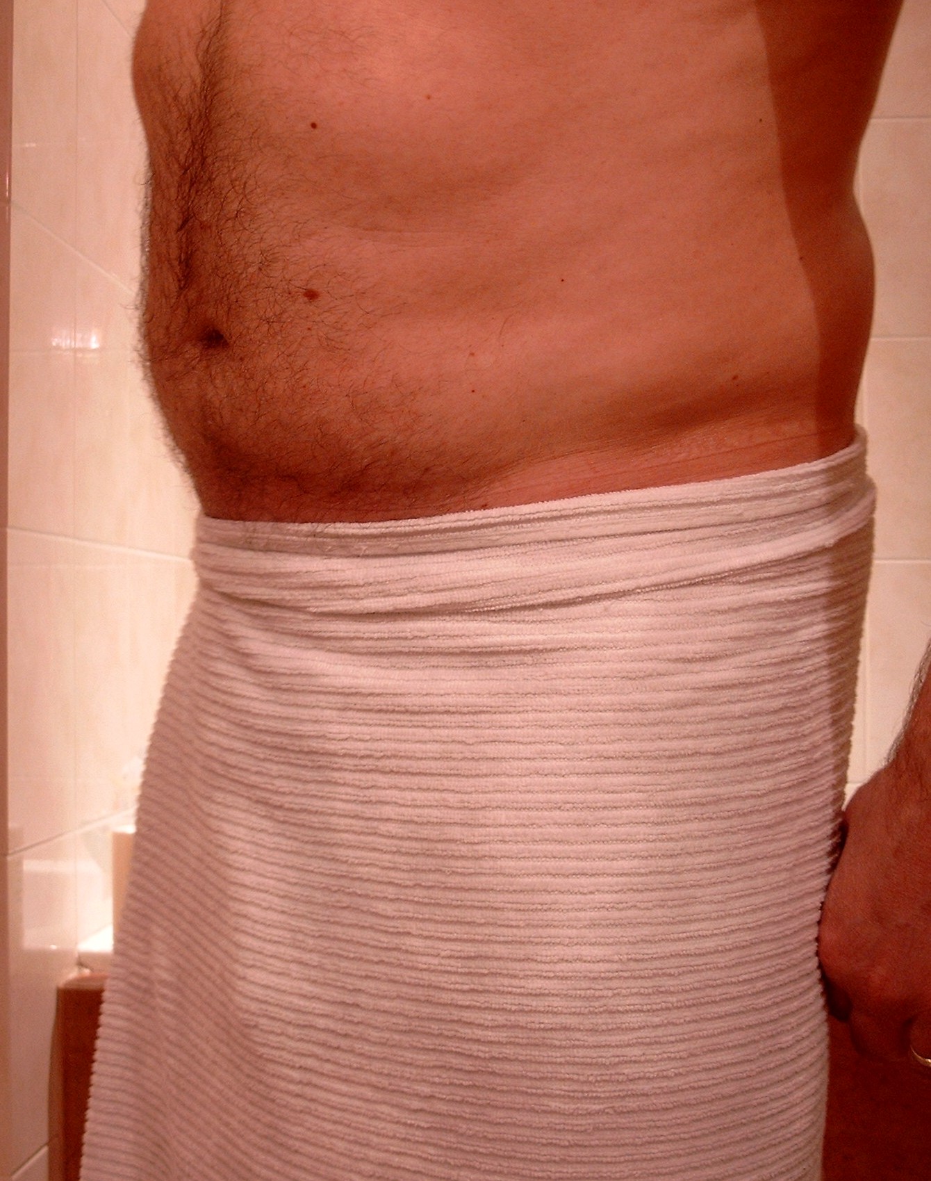 Ik sta voor de deur van mijn appartement en steek de sleutel in het slot. De sleutel draait moeilijk om, alsof het slot wat verwrongen is. Ik maak nota in mijn hoofd om morgen de conciërge hierover aan te spreken. Voor je het weet breekt de sleutel af en sta ik mooi voor de deur. Ik draai de deur terug in het slot, doe mijn jas uit en hang die in de kast. Ik wandel door naar mijn leefruimte, een kleine gezellige ruimte, waar een zit- en eethoek juist in past. Om de ruimte groter te doen lijken heb ik aan een muur een grote spiegel gehangen, naast de eettafel. Ik wandel door, doe het licht aan en … verstijf. Op de zetel zit een man. Een man met een leren masker aan. Met enkel een leren masker aan. Zijn linkerhand gaat rustig op en neer over zijn knoert van een erectie. Ik weet niet waarom in deze situatie, maar mijn hersenen registreren dat de man een mooi gespierd lichaam heeft. Niet bodybuilder gespierd, maar gespierd door zwaar mannelijk werk te doen. Mijn ogen kunnen niet van zijn stijve lul afblijven. Die is zeker 20 centimeter, fier recht omhoog. Mijn benen kunnen niet bewegen, tot ik achter mij de deur hoor toevallen. Daar staan nog twee mensen, in het donker. Ik kan niet goed uitmaken, maar ze lijken kleiner en vrouwelijker. En ze hebben van alles in hun handen. Ik kan niet goed zien wat, maar ik hoor iets ratelen. Ik hoor de man opstaan uit de zetel en draai me terug om. Hij komt langzaam op mij afgewandeld. Mijn blik wordt weer naar zijn lichaam getrokken en ik vergeet de twee andere mensen achter me.