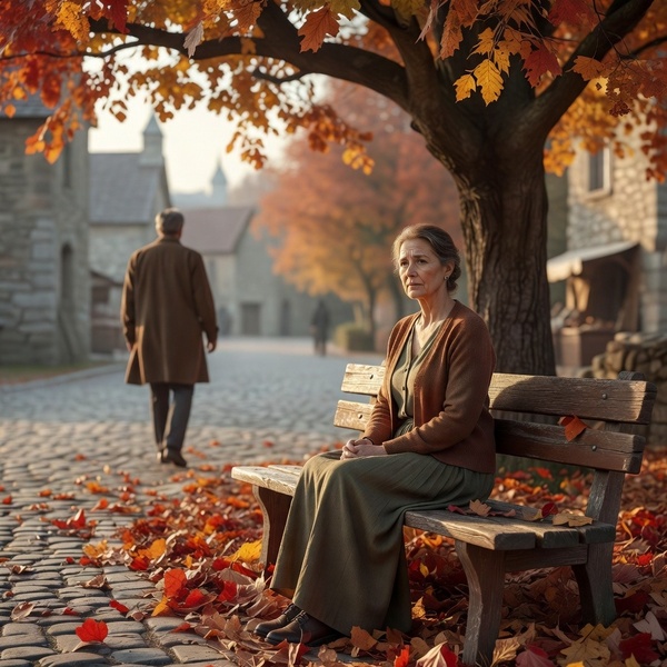Aan de andere kant van het plein liep een man met een papieren zak van de bakker in zijn hand. Hij liep met stevige passen, maar stopte plotseling toen hij de vrouw op het bankje zag zitten.
