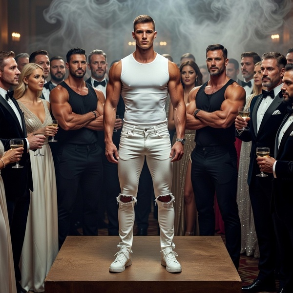 Het is vrijdag 13e augustus 2021 als ik per opbod, verhuurd ga worden aan de hoogste bieder. Het is ongeveer twee uur als ik als laatste aan de beurt ben om geveild te worden. Ik wordt, slechts gekleed in een eenvoudig, zeer strakzittend wit T-shirt zonder mouwen en ultrakort, zeer strakke en gerafelde spierwitte jeans naar het podium geleid door twee enorm indrukwekkende bodybuilders, de bodyguards van de Veilingmeester. Ze zeggen niets maar lopen weerszijde van me, ieder met een enorme grote hand op mijn schouder, door de lange gang naar de zaal. Gaandeweg hoor ik meer ene meer luidruchtige geluiden in allerlei vreemde talen en wordt ik op het podium gezet als de twee grote gordijnen opzijschuiven. Ik zie een schemerige, rokerige hal vol met pratende en drinkende mannen en vrouwen in allerlei formele en vooral, sjieke kleding. Maar bijna direct worden er, mij verblindende, spots op me gericht.