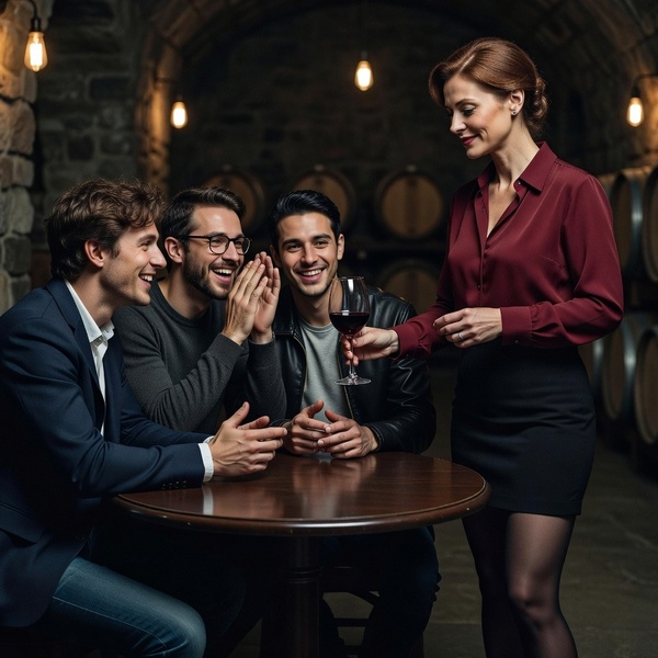 Ik zal uitleggen hoe ik in deze situatie terecht kwam. We hebben een feest georganiseerd, muziek, alcohol en de ontspannen sfeer in de feestkelder van mijn huis maakten het alleen maar beter. Tegen het einde van het feest hielpen de boys met opruimen. Ik had teveel wijn gehad en ik had ook geblowed. Daarna had ik een weddenschap verloren, en dit was de inzet. De weddenschap was even stom als kansloos: ik wilde geblinddoekt raden welke van de drie jongemannen me een tongzoen zou geven. Ik kende twee van de jongens tot dan toe niet eens, en de derde was mijn neef Kars, en hem had ik ook niet kunnen raden. Hoe had ik dat ook gekund? We waren nooit verder gekomen dan een vriendschappelijke, familiaire relatie, en het was mijn verdomde seksuele frustratie en mijn door alcohol aangewakkerde arrogantie die me in deze situatie hadden gebracht.