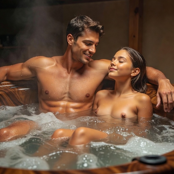 Die avond belde Jules of ze bij mij kon slapen in het weekend. Ze was haar kamer aan het opknappen en het stonk er vreselijk naar verse verf en tapijt. Uiteraard, geen probleem, ik zag zelfs een kans. Die vrijdagavond haalde ik eten bij Ming China en ik vroeg of ze zin had in een rondje jacuzzi. “Net als vorige keer?” vroeg ze. Ik knikte van je. “Dan zie ik jou nu ook in je boxer, want gisteren was je een keurige ober in je pantalon en witte blouse.” Ze moest eens weten. “Ach, er is geen hond die ons kan zien en we zijn familie. Ik ga naakt.” Ze keek me even aan. “Dan doe ik dat ook.” Zo zaten en een half uurtje later in de jacuzzi met een karaf sangria bij ons. We spraken wat over het feest en ik vroeg naar Frank. “Dat is over!” klonk haar stem kil. Okay, daar was ze duidelijk in. “Maar toch droom je over hem?” Ze bloosde. “Ja, als ik geil ben moet ik wat. Ik wil een echte vent die mij dan helpt, geen filmster of muzikant. En jij…?” wilde ze weten. Ik keek haar niet begrijpend aan. “Als je alleen en geil bent… Aan wie denk je dan?”