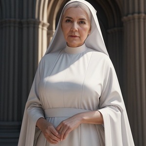 Na nog veel meer fotos genomen te hebben liet ik moeder-overste aan beide nonnen een hostie geven. Ze moesten hiervoor hun mondkapje omhoog doen, maar mochten het niet afdoen. Na dit kregen ze wijn, rode wijn uit een kelk en zei ik tegen Fidancia: laat expres wat van de wijn uit je mond lopen en over je tieten gaan. Ze deed dit en ik zei: Ignacia, leun naar Fidancia toe, doe je mondkapje omhoog en lik het van haar tieten af en neem haar tepel even in je mond. Ook dit nam ik op en zei tenslotte: nu mag moeder-overste ook wat wijn verspillen en over haar beide tieten laten lopen en dat likken jullie beide eraf. Ieder een liet en ook hier weer de tepels in de mond. Nadat dat gedaan was zei ik: nu lopen jullie alle drie de gang in, moeder overste voorop in het midden en jullie twee drie stappen achter haar en loop langzaam naar voren. We namen hier een twintigtal fotos van en ik zei: en nu omdraaien. Moeder-overste zei: maar dan komen onze geslachtsdelen in zicht. Ik zei: dat mag niet.