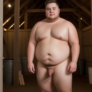 Terwijl ik me klaarmaak om met de fiets naar de bibliotheek te vertrekken, voel ik toch nog een onweerstaanbaar verlangen dat me naar de stallen trekt. Daar, ergens achteraan, in de afgelegen schaduwen van de boerderij, trek ik gehaast mijn broek naar beneden. Mijn dikkige lichaam voelt onhandig in de strakke kleding, en mijn handen trillen van opwinding terwijl ik mijn kleine penis tevoorschijn haal. Nu ze niet thuis zijn, is dit mijn kans om ongegeneerd te genieten.