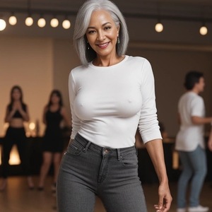 Later op de dansvloer zag ik haar met haar ietwat dronken man. Ik keek haar aan en ik merkte door haar verlegen reactie dat ze dit niet gewend was. Ze droeg een strakke broek met een colbertje en het witte shirt daaronder spande strak om haar volle deinende borsten. De twinkeling in haar ogen verraadde dat ze wel genoot van mijn flirtende blik.