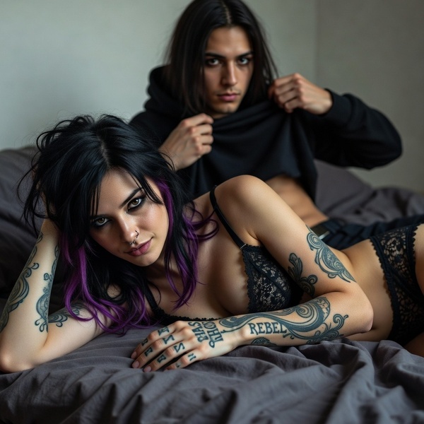 Nog even en ik krijg hier spontaan mijn eerste orgasme. ‘Hoe kom je allemaal aan deze versieringen?’ vraagt hij dan. En terwijl Eddy doorgaat met éen vinger mijn lijf te verkennen en alles keer op keer aanraakt vertel ik hem van mij als het zwarte schaap van de familie. Dat ik anders wilde zijn en dat ik die lookalike op Pornpics zag, die punkmeid die zich Miss Seamonster noemt, dat ik me toen door haar heb laten inspireren. ‘Hmm, geil hoor’ is Eddy zijn enige maar wel duidelijke commentaar.
