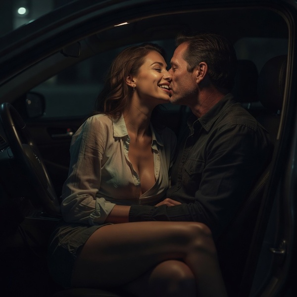 Na zijn orgasme trok hij zijn broek weer aan, zette de rugleuning omhoog en ze gaf hem een kus. Ik zag dat ze de deur van de auto