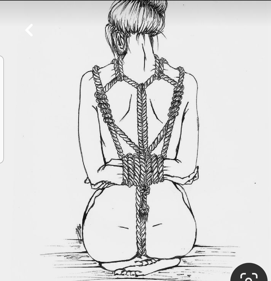 Dan zeg ik tegen haar : “met je handen onder je knieën, je knieën optrekken tot net niet tegen je borsten maar ernaast, de knieën zo ver mogelijk uit mekaar houden”. Dat doet ze en zo ligt ze heel mooi ten toon. Haar kutje staat een stukje open, haar borsten en buik zijn mooi zichtbaar tussen haar dijen, zelfs haar kontgaatje is mooi zichtbaar. Yolande krijgt een verbeten blik in haar ogen, maar door deze houding kromt ze een beetje haar rug waardoor de spanning op het kettinkje dat haar tepelklemmen verbindt, toch iets minder wordt. “Niet bewegen en geen enkel geluid maken” zeg ik nog.